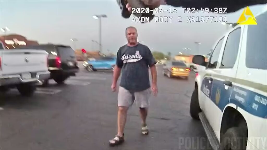 Phoenix, Arizona — The Phoenix Police Department released a body camera footage of an officer-involved shooting that happened on June 14, 2020. The suspect from this incident has been identified as 55-year-old Jon David Brouseau. The incident happened at approximately 7:45 p.m. in a parking lot near 43rd Avenue and Union Hills in Phoenix. A 911 caller reported a drunk man armed with a knife was threatening customers inside a grocery store. Officers from the Cactus Park Precinct responded and saw several people pointing to Brouseau who was now walking around the parking lot. The officer contacted Brouseau and immediately noticed that he was armed with a knife. The officer repeatedly told Brouseau to drop the knife.