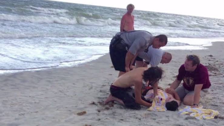 “There was a big trail of blood from the water to the sand,” witness Stephen Lee told CNN.