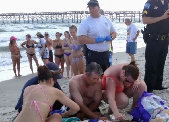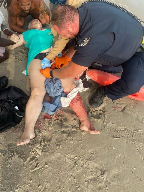 Lifeguards rescued her from the water and officers applied a tourniquet, police said.