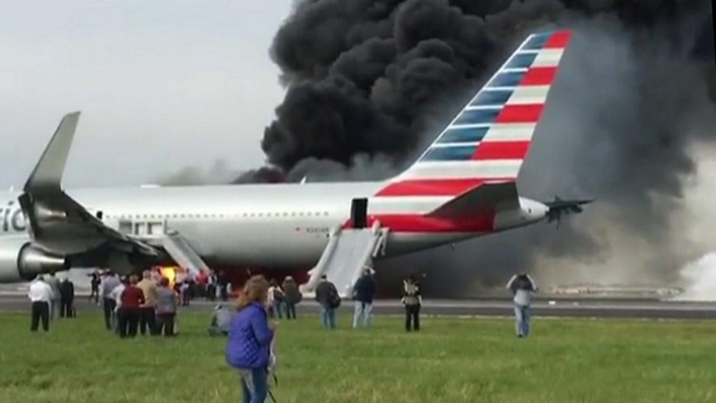 CHICAGO — Pilots were forced to abort a takeoff and evacuate passengers from a burning American Airlines flight on a runway at Chicago O’Hare International Airport after the airliner experienced what a federal official said was a rare and serious type of engine failure.