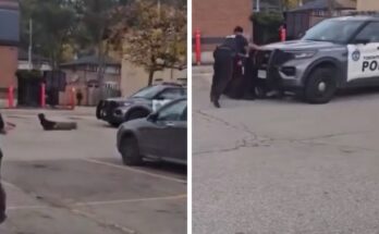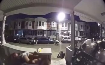 Police and the suspect exchanged dozens of gunshots on Elizabeth Street and Perrine Street at around 5:40 p.m. according to the video’s time stamp.